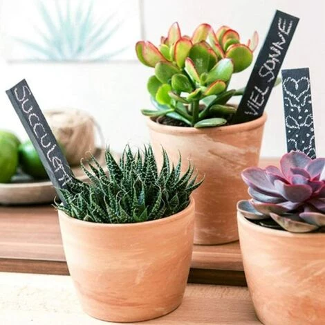Vous pouvez écrire sur chacune des ardoises à la craie et l’inscription reste même avec de légères averses. Vous pouvez ainsi réutiliser les panneaux et donner à votre jardin un aspect constant.