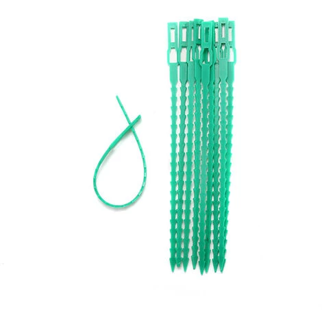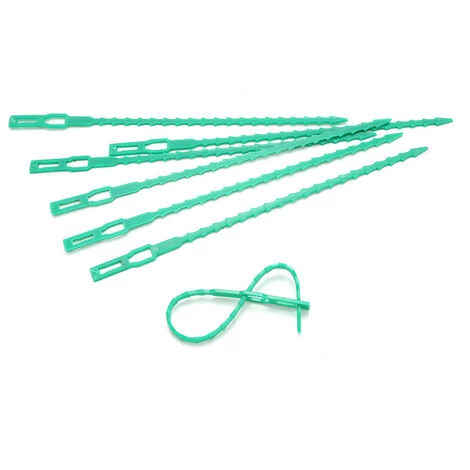 – Fabriqués en plastique de couleur verte, ces liens robustes et ajustables permettent d’ancrer en toute sécurité des plantes légères aux fils, cannes, piquets, etc.