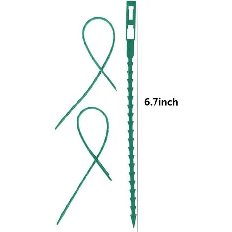 Matériau PE et taille de 17 cm, 50 pièces dans un seul paquet. Il est utilisé pour le jardin, le garage, la cour et la maison, le bureau, l’atelier, etc., maintient les plantes en toute sécurité et les attache pour soutenir les piquets, les branches. attachez les plantes, les légumes et les vignes aux piquets et aux treillis, et offrez un support sûr pour les tiges des plantes. Il est très pratique et rapide de collecter et d’organiser la plante, et cela ne blessera pas la main. Plastique souple vert, facile à utiliser et réutilisable, le mouvement des attaches zippées se verrouille en place, il est réglable lorsque vous en avez besoin. Ces attaches de plantes réglables n’endommageront pas les plantes ou les feuilles