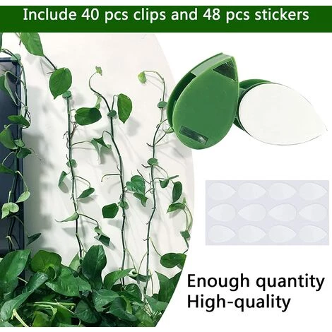 Contenu de l’emballage : 40 pinces murales pour plantes et 48 autocollants adhésifs en acrylique transparent. La couleur verte et la forme des feuilles peuvent rendre les pinces pour plantes grimpantes cachées dans les plantes vertes et difficiles à trouver. MATÉRIAU DURABLE : les pinces murales pour plantes grimpantes. est fabriqué en ABS de bonne qualité durable, d’environ 1,10 cm de long ; l’autocollant adhésif acrylique amélioré peut être fermement collé sur le mur, n’endommagera pas le mur. FACILE À UTILISER: Les clips de fixation de plantes pour vignes sont faciles à utiliser. Il suffit d’étendre l’index et le pouce dans les espaces des deux côtés des clips , et appliquez une légère force vers le haut, et vous pouvez facilement l’ouvrir puis l’utiliser.BEAUTIFY: les vignes vertes poussent à volonté, affecteront la beauté de la maison, avec ces clips de montage mural d’escalade pour plantes peuvent laisser les vignes pousser dans la direction que vous voulez, ce qui rend votre maison ou plus belle. Polyvalent : le mur de support de vigne peut non seulement être appliqué pour la décoration à l’intérieur ou dans la cour, mais peut également être utilisé comme support de fil pour rendre la maison plus propre.