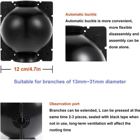 RÉUTILISABLES ET DURABLE : Les dispositifs d’enracinement des plantes sont faits de nouveau plastique PP de bonne qualité, la structure robuste les rend difficiles à casser ou à déformer, fiables et durables, vous pouvez les utiliser pendant longtemps; Environ. 12 x 12 cm de longueur et de largeur, pratique à appliquer.