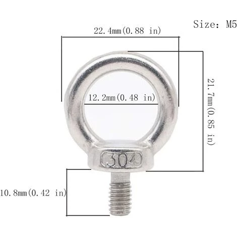 Les écrous à oeil sont fabriqués en acier inoxydable antirouille et très résistant.<br>Paquet: 12pcs dans M5<br>Largement utilisé dans les machines de levage d’ingénierie et à la maison.<br>Veuillez vous reporter au diae de taille détaillé pour vous assurer de choisir la bonne taille.<br>L’acier inoxydable est de type austénitique, il a un aimant faible, ce qui est normal.