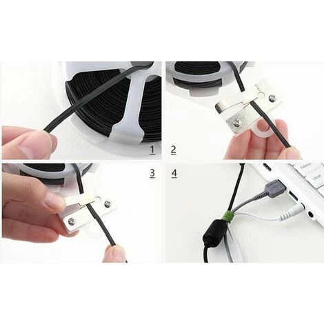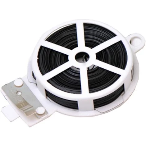 50 mètres de câble métallique de fixation, sur dévidoir, très pratique.Largeur du fil : 0,3 cm.