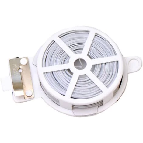 50 mètres de câble métallique de fixation, sur dévidoir, très pratique.Largeur du fil : 0,3 cm.