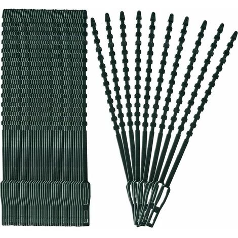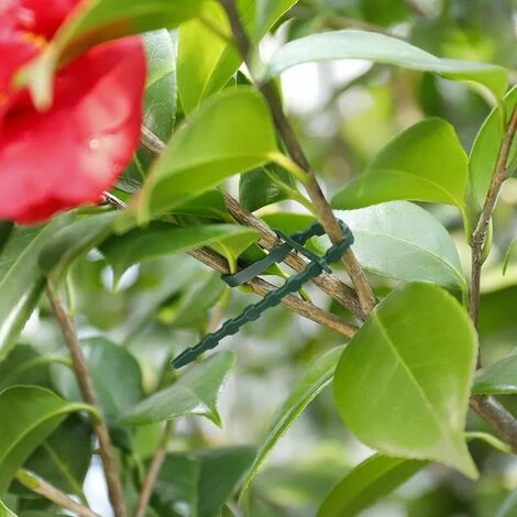 – Fabriqués en plastique de couleur verte, ces liens robustes et ajustables permettent d’ancrer en toute sécurité des plantes légères aux fils, cannes, piquets, etc.