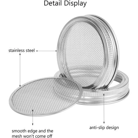 Matériel de Haute qualité: Les produits sont fabriqués en acier inoxydable de haute qualité, ce qui est durable et pas facile à briser, à plier ou à la rouille. C’est parfait pour faire des graines de germes biologiques dans votre maison ou votre cuisine.