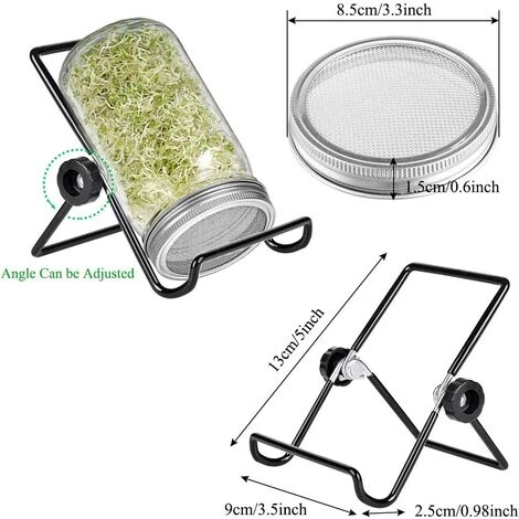 Supports pliables: Pour 32 oz. Nôtre couvercle de germination peut être ajusé à n’importe quel angle et vissez-le bien pour garantir un bon drainage. La conception antidérapante peut être utilisée n’importe où. Il peut également être utilisé comme support de tablette pour téléphone iPad mini, qui est pratique pour le stockage et les voyages.