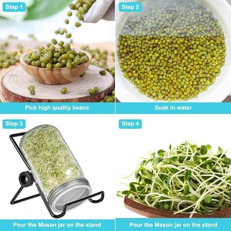 Pratique et multifonctions : Lot de 4 couvercles de bocaux germoirs satisfaire vos besoin de faire des divers organiques graines de choux, comme mungbean choux, choux de soja choux, brocoli, choux de lentilles et plus. Ils sont également parfaits pour faire des tests germinative criblage, filtrer du thé ou du jus, sucre, épices ou la poudre.