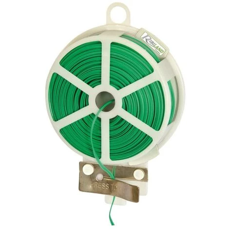 Lien plastique souple, plat et fin, armé, avec dévidoir, pour lier et attacher.