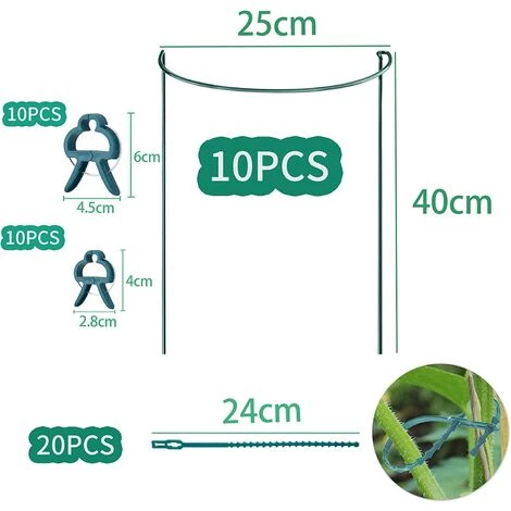 【Taille Raisonnable】Chaque piquet de support plante mesure 25 cm de large, 40 cm de haut, le paquet total de 10 piquets de tuteur plante grimpante intérieur, demi-ronds pour une installation et une utilisation faciles.Vient également avec 20 clips et 20 serre-câbles.
