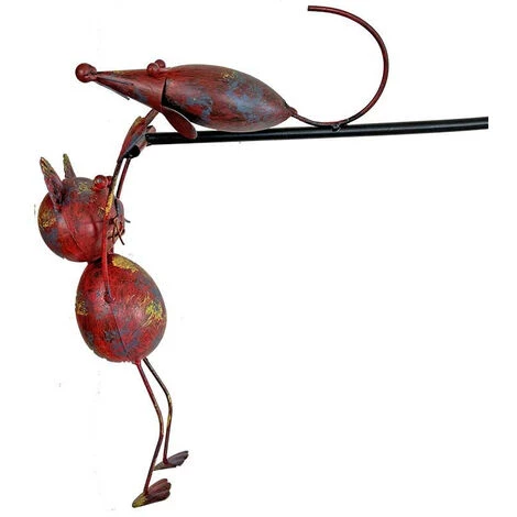 Ce joli mobile en fer et sa patine multicolore trouvera sa place dans votre extérieur. Composé d’une partie supérieure à balancier ornée d’un chat et d’une souris pour la décoration. Ce tuteur sera mis en mouvement grâce à la vitesse du vent plus ou moins rapide selon les saisons et ajoutera du dynamisme dans votre jardin.