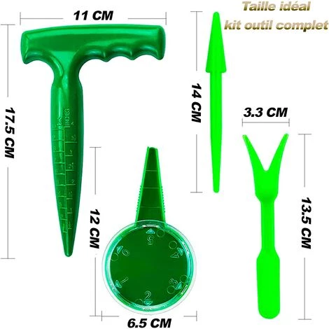 Quantité de livraison : 1 jeu de 4 pièces (transplanteur de semis * 1 + perforateur * 2 + coupe * 1)