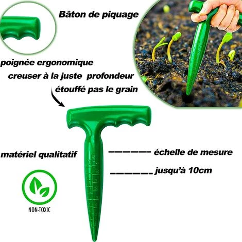 perforatrice ergonomique en forme de pistolet – avec échelle de mesure de profondeur pour serrer les semis au bon endroit fait un joli « trou » puissant pour les graines / boutures, déposé le semis à la bonne profondeur pour un travaille au petit oignons
