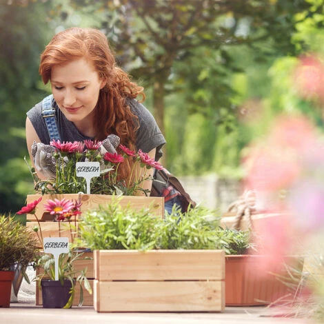 Quand vous plantez de nouveau votre jardin au printemps, alors vous pouvez faire reconnaitre les boutures, graines et plantes avec les étiquettes de plantes en lot de 100. Inscrivez les étiquettes blanches avec un marqueur et assurez-vous ainsi pour un aperçu parfait sur le parterre à légumes. Pour réutiliser ces étiquettes à planter, lavez-les simplement avec du produit et d’une éponge humide. Les étiquettes en plastique sont aussi idéales pour la croissance des herbes à la maison.