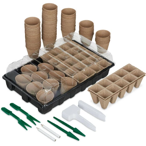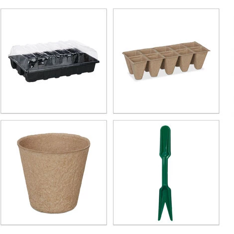 Avec cet ensemble de plateaux de semis XXL, vous êtesparfaitement équipé pour faire pousser des plantes en intérieur. La serre aveccouvercle fournit une température et une humidité accrues, créant ainsi lesconditions idéales pour la germination des graines ou l’enracinement desboutures. Dès que les semis sont suffisamment grands, ils peuvent être plantésavec les pots ou plateaux de semis biodégradables. Des outils de repiquage etdes étiquettes à planter complètent le set de plantation.
