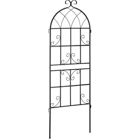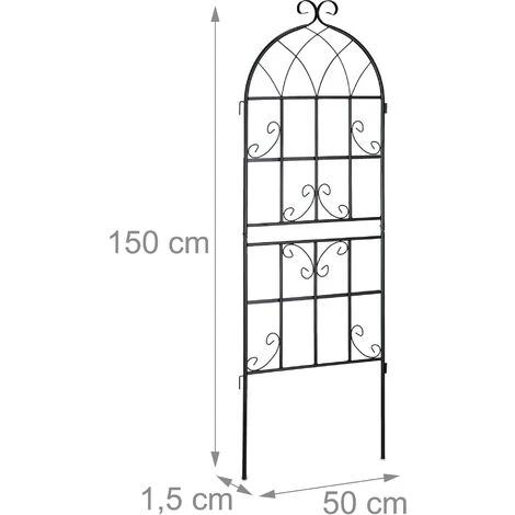 Ce treillis de jardin en lot de 2 soutient non seulement la croissance des plantes grimpantes, mais contribue aussi avec ses belles lignes et formes à un aménagement décoratif de jardin. Les plantes grimpantes comme le lierre, les roses, la clématite ou la vigne seront mis en avant grâce à cette arche rosier en métal. Décidez vous-même si vous voulez mettre en place les éléments individuellement ou ensemble. Les treillis sont simplement plantés dans le sol et peuvent être reliés entre eux par les charnières.