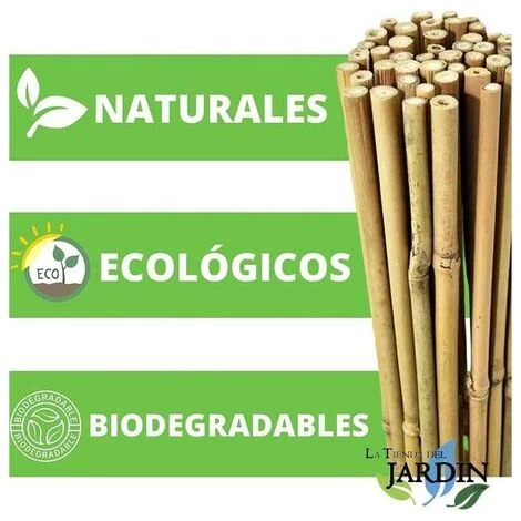 - Especificaciones: 20 cañas de bambú natural de 60 cm de largo, con un diámetro de 5 a 8 mm. El color del bambú varía entre marrón y amarillo claro. Ideales para enderezar plantas agrícolas tales como las tomateras, vid y plantas ornamentales.