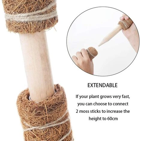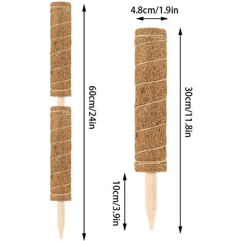 Hauteur extensible: Chaque tuteur plante grimpante mesure 30 cm de long et 5 cm de diamètre. Vous pouvez connecter 2 tuteur en fibres de coco ensemble, la hauteur totale est de 60 cm. Il peut répondre aux exigences de croissance des plantes de rotin et convient très bien aux plantes grimpantes.